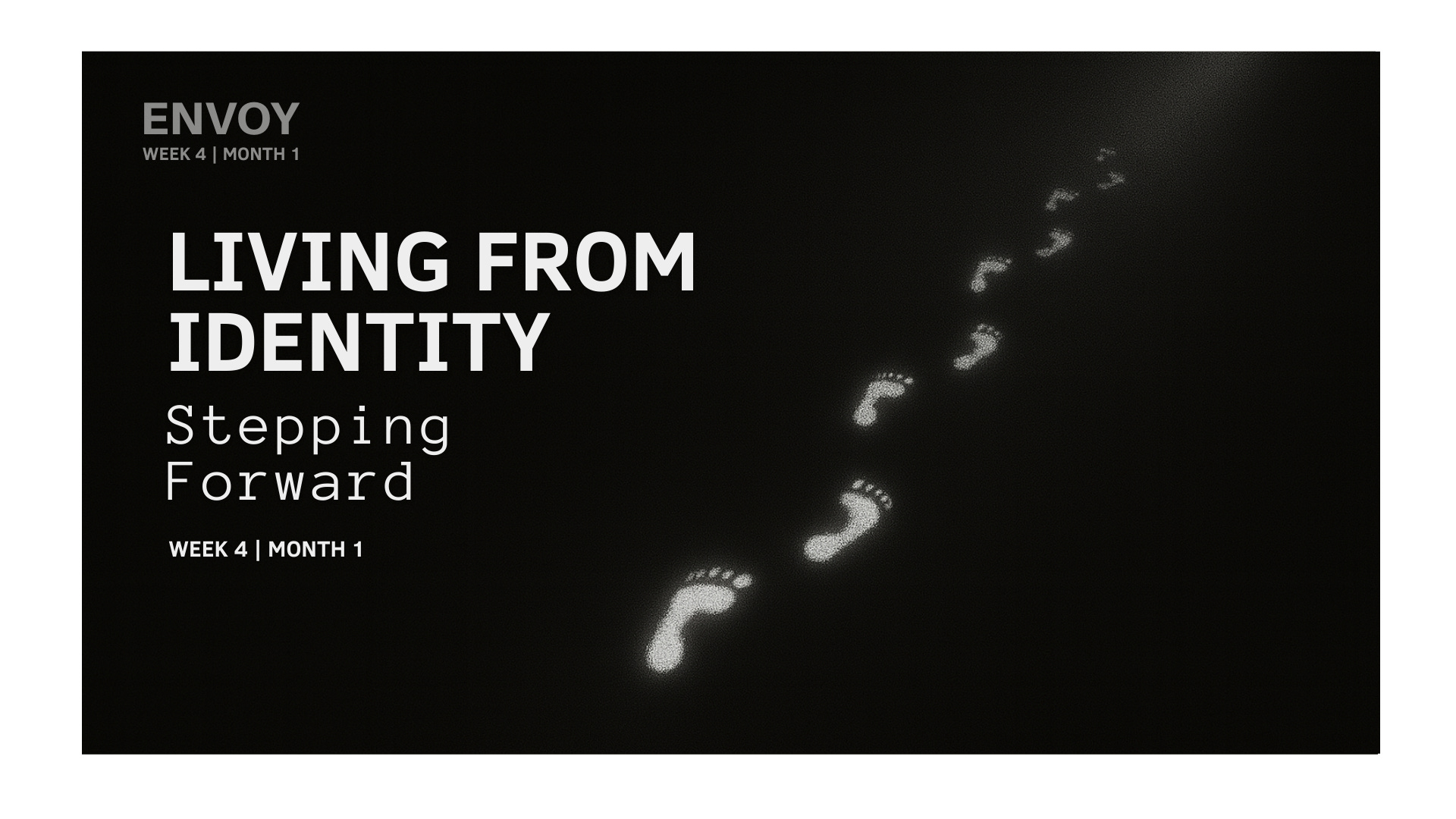 This week is more than a month 1 conclusion; it is a priming, it is the driving of gunpowder behind the topics to come. Living from identity is the anchor that swings us into the rest of this journey. As roots drive deep, fruit begins to form. Month 2 ahead will move us from identity into practice, showing how abiding in Christ and adopting rhythms of prayer, Word, and Spirit activities anchor us for lifelong discipleship. Month 3 will press deeper into relationships, where our identity and practice spill outward into community. Month 4 will move into mission endurance, where all we have received is carried into the world as Christ’s Envoys.